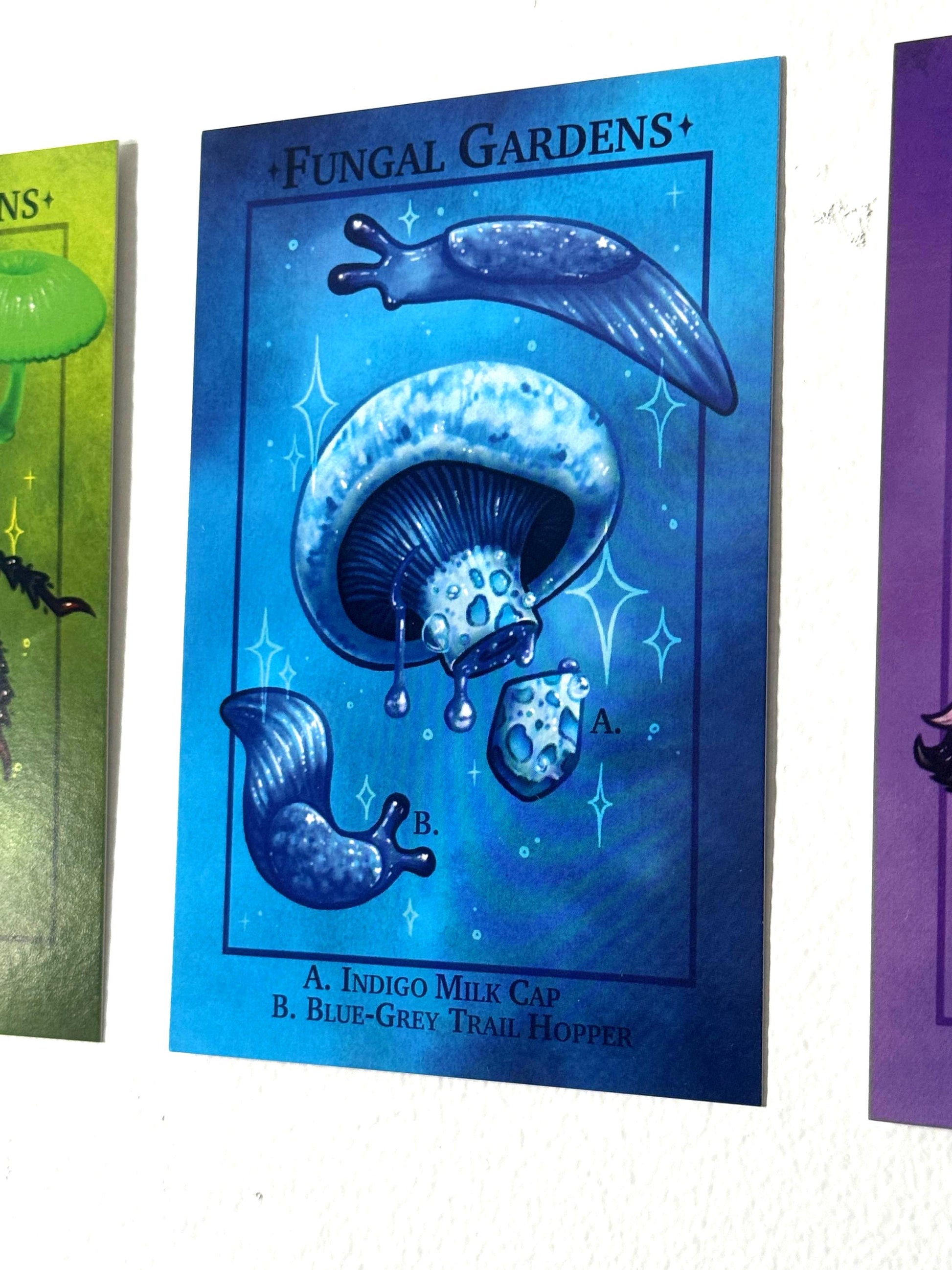 Mushroom Art Print - Fungal Gardens - Indigo Milk Cap